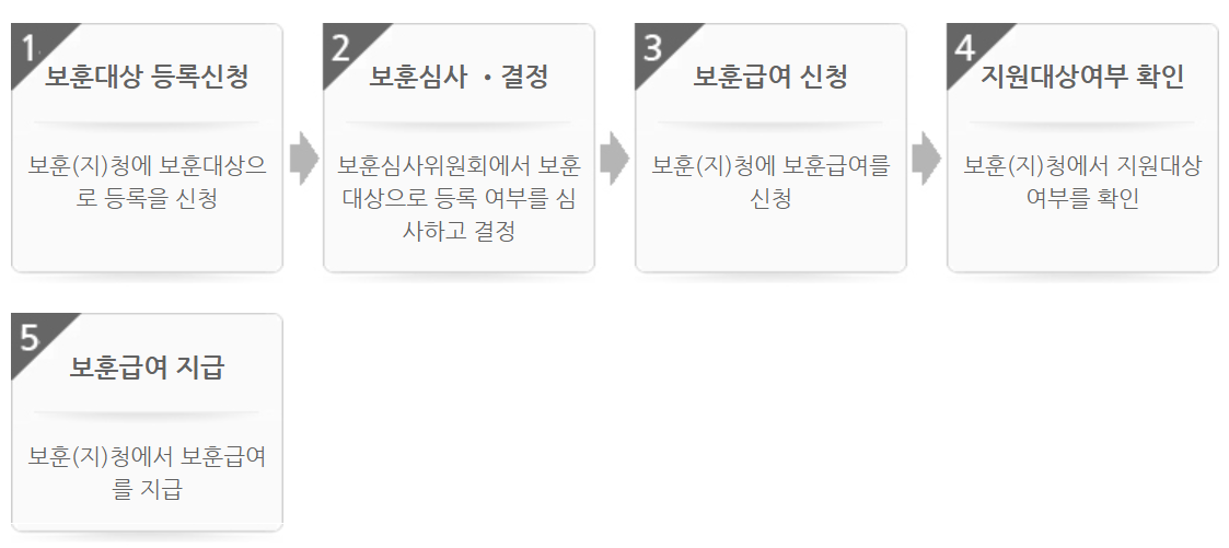 - 관할 보훈(지)청이나 제주보훈청에 직접 방문하거나 우편, 인터넷으로 신청합니다.