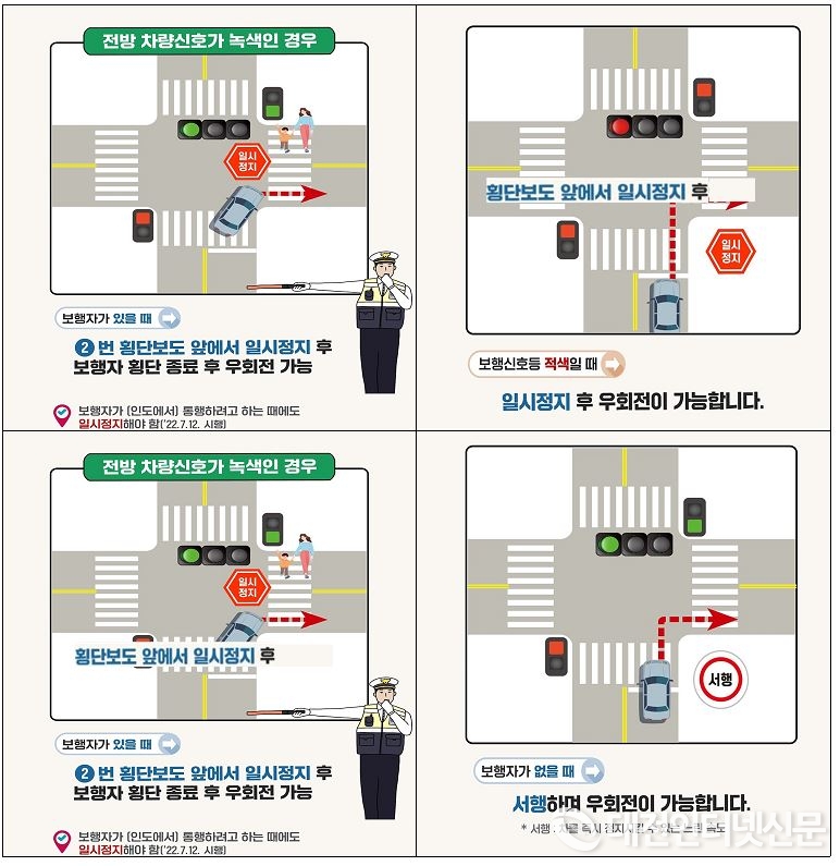 그동안에도 횡단보도 앞에서는 일시정지가 원칙이었는데요. 그런데 이런 부분에 대해서 좀 확대가 된다라고 보시면 될 것 같아요.