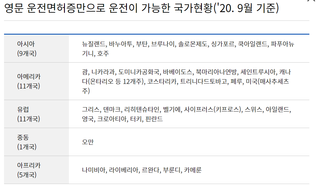 - - 영문운전면허증을 인정해주는 국가에서 운전할 때 별도의 번역공증서 없이 운전이 가능하지만